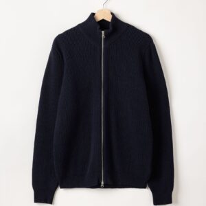 Lackstrickpullover aus Wollmischung mit durchgehendem Reißverschluss. Modische Details. Zwei-Wege-Metallreißverschluss. Gerippte Bündchen und doppelt gefalteter Rippkragen. Nachhaltig in Europa produziert.