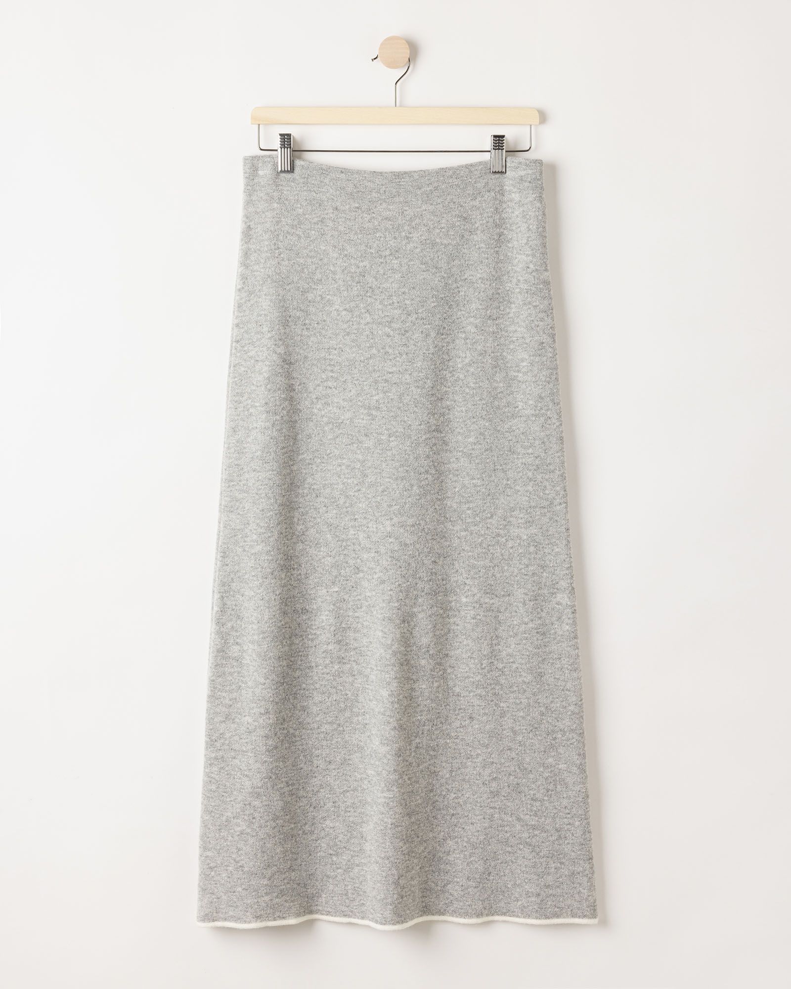 Gestrickter Rock aus weicher Kaschmirmischung. Kontrastfarbe auf der Innenseite, sichtbar am Saum und am Schlitz hinten. Elastischer Bund, wadenlang und leicht A-Linien-Schnitt. Kombinieren Sie ihn mit Sally Turtle für ein bequemes und passendes Set. Der Rock fällt groß aus, wählen Sie eine Nummer kleiner für eine normale Passform. Das Garn ist GRS-zertifiziert, was einen höheren Mindestanteil an recyceltem Material, Rückverfolgbarkeit und zusätzliche soziale und ökologische Anforderungen garantiert. Nachhaltig produziert in Europa.