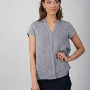 Die W Leinenbluse ist aus 100 % weichem Leinenstoff mit leichter Textur gefertigt. Diese Bluse hat kurze Ärmel und einen V-Ausschnitt. Sie hat eine lockere Passform, ist hinten etwas länger und hat eine abgerundete Form. Mit Details wie dem P-Logo auf dem Halbmond im Nacken.